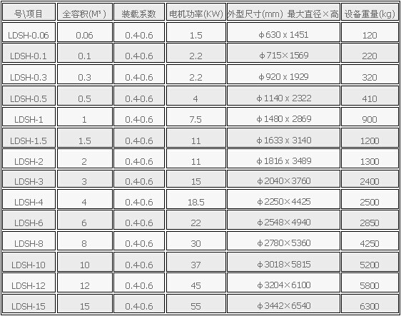 注:* 表中混合量是以比重為1的粉料為介質(zhì)所測數(shù)據(jù),選型應(yīng)根據(jù)產(chǎn)品的目數(shù)、比重等參數(shù)進(jìn)行計(jì)算。